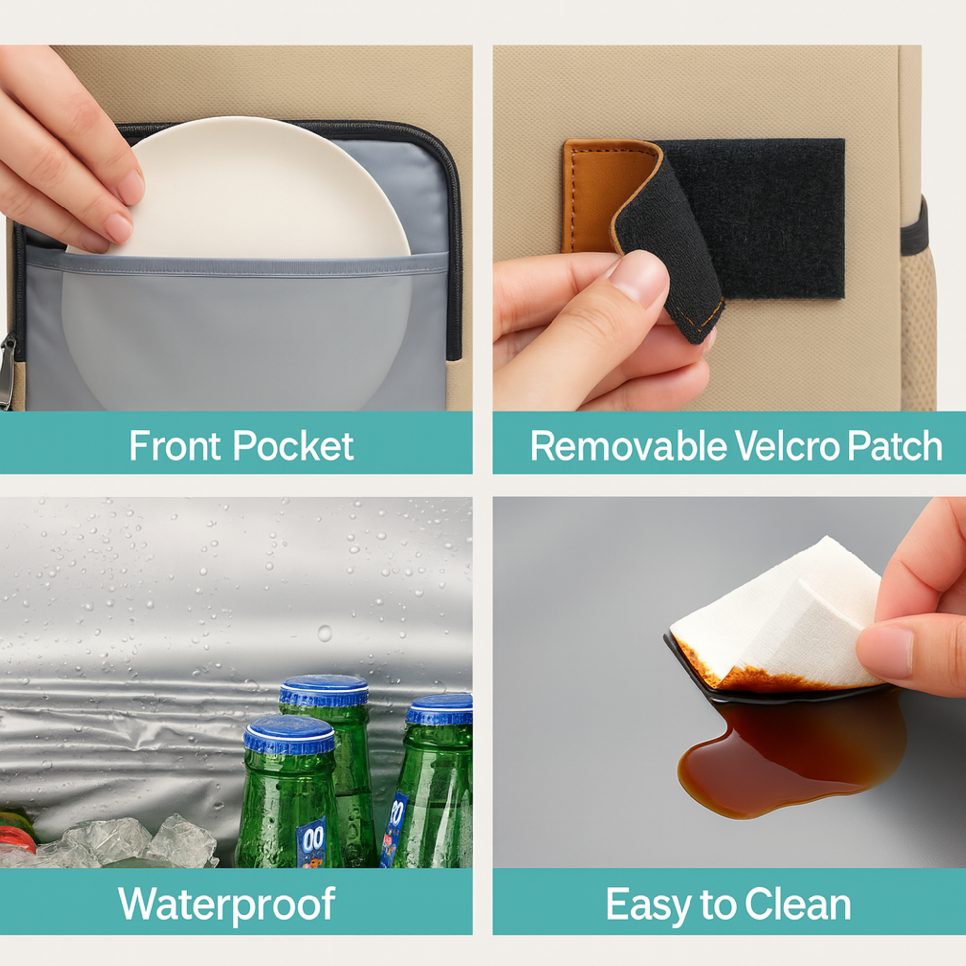 Made from durable 300D cationic fabric with a waterproof PVC coating, this lightweight yet strong cooler bag is designed for everyday use and outdoor durability. Perfect for parents, professionals, hikers, students, and families.