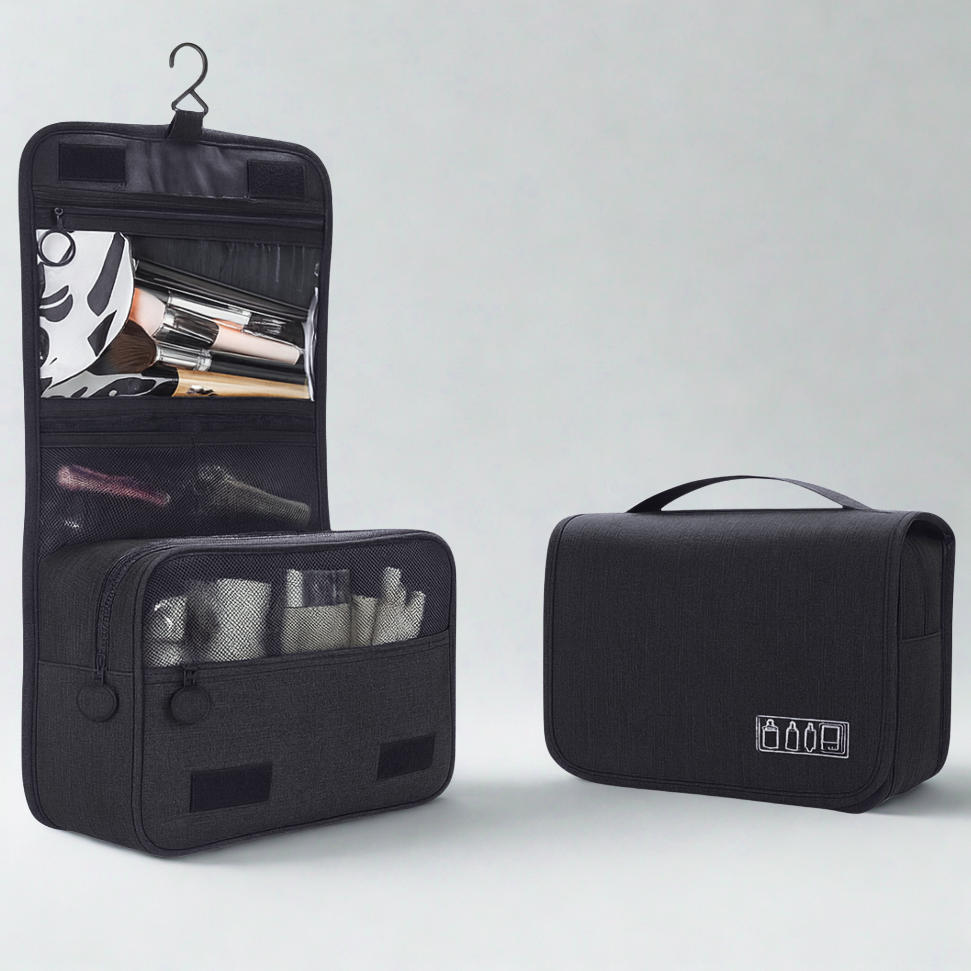 Made from durable polyester with reinforced seams and high-quality zippers, it’s built to last through countless trips. The built-in hanging hook allows you to easily access your items while saving precious counter space – ideal for small hotel bathrooms, dorms, or shared spaces.